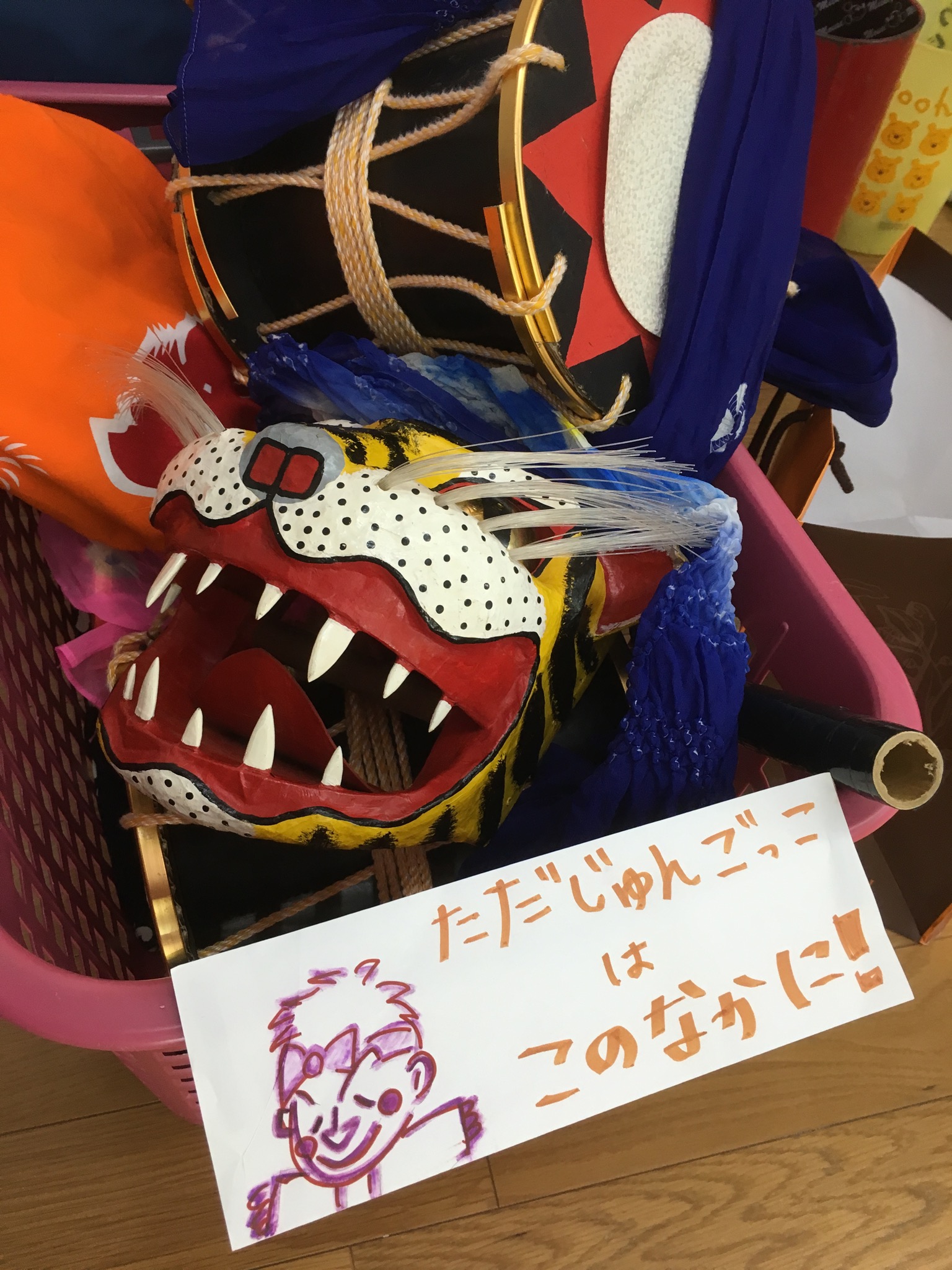 園にある小道具を出してみたら喜んで遊び始めた子供たちです。